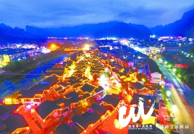 11月16日晚,空中俯瞰改造后的武陵源城區(qū)繁華夜色。張家界市武陵源區(qū)投入6000萬元、吸納社會投資10億元,對“城中村”進行改造。