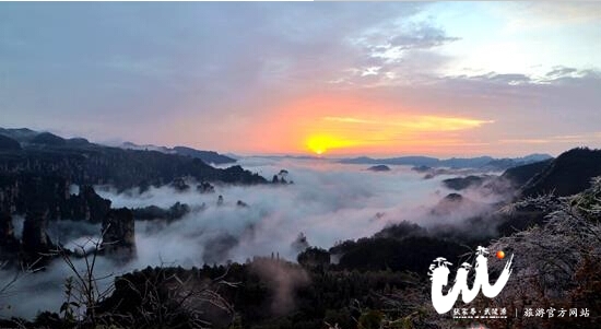 11月25日,久雨后的張家界武陵源天子山景區(qū)不僅出現(xiàn)了云海潮涌的壯觀景象,而且受低溫寒潮影響,山上植被處處綴滿了冰掛,讓中外游客驚嘆不已。