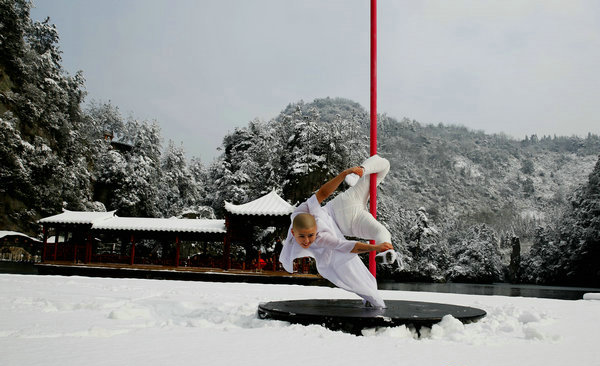 1月23日,韓國籍鋼管舞高級教練、第八屆中國鋼管舞錦標賽冠軍金美娜率弟子湖南張家界武陵源寶峰湖景區(qū)上演鋼管舞秀,挑戰(zhàn)寒冬冰雪......