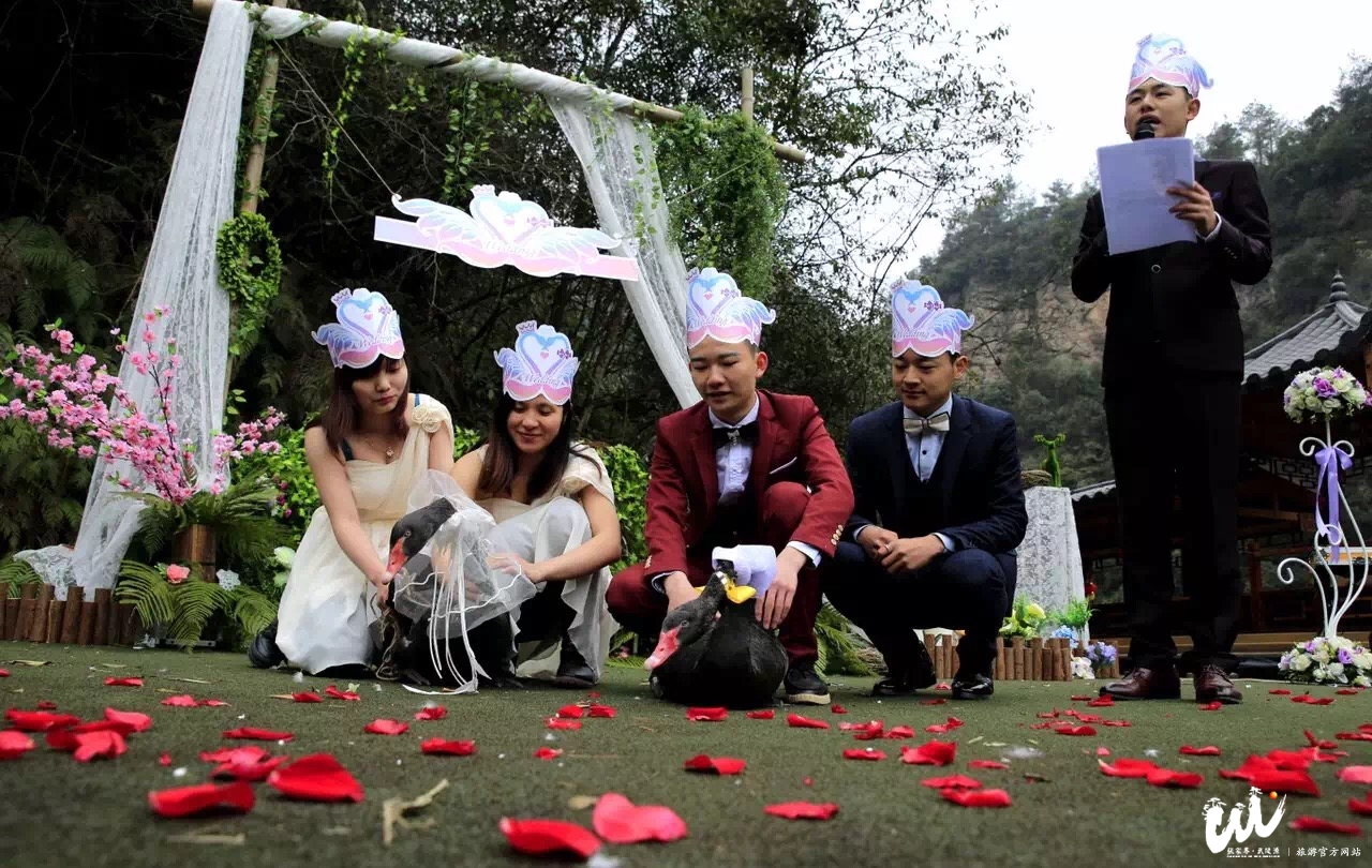 2月21日,在素有中國“醉美情湖”之稱的湖南張家界寶峰湖景區(qū),舉行了一場特殊的婚禮,兩只在寶峰湖生活了兩年多,每天形影不離的黑天鵝身著婚紗......