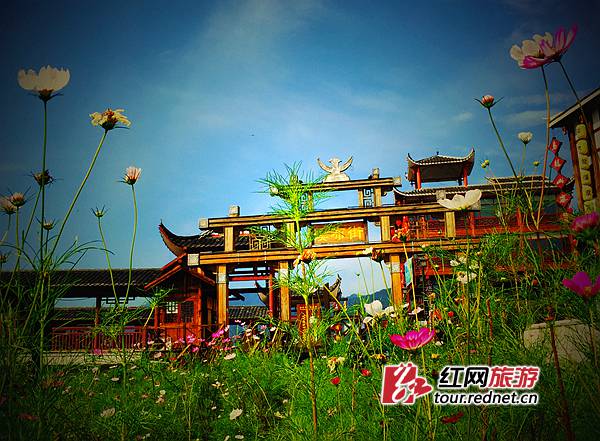 10月12日,湖南張家界市武陵源區(qū)溪布老街,天高氣爽。成片的格?;ǜ偲G開放,為城區(qū)添上一道靚麗風(fēng)景,吸引眾多游客和市民賞花留影。