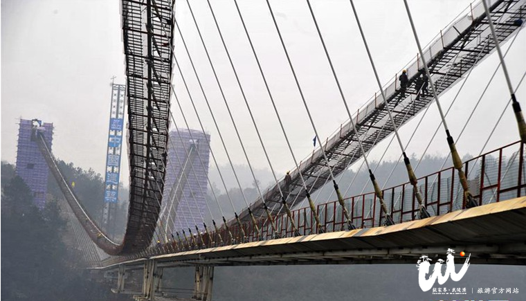 查看詳情高清:張家界大峽谷人行玻璃橋進(jìn)行橋面施工2016/01/19