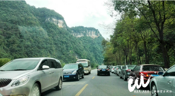 今年十一期間武陵源公路上停滿自駕車