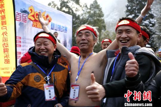 張家界·武陵源旅游官網(wǎng)1月25日訊 (通訊員 吳勇兵)1月24日,湖南張家界核心景區(qū)武陵源舉辦首屆“光豬跑”登山挑戰(zhàn)賽,50余名戶外登山愛好者身著短衣短褲在低溫雪天徒步挑戰(zhàn)黃石寨3千余臺(tái)階,享受冰雪的健身樂趣,倡導(dǎo)保護(hù)自然環(huán)境。