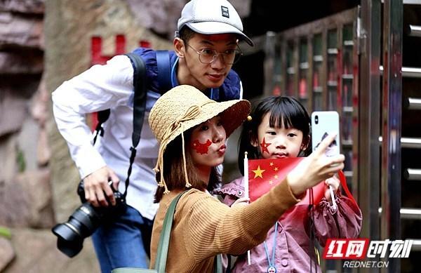 張家界·武陵源旅游官網(wǎng)10月2日訊(記者 姚冶 通訊員 張彤彤 吳勇兵)一年一度的國(guó)慶節(jié)黃金周來(lái)臨。在張家界武陵源核心景區(qū),保有“世界最高戶外觀光電梯”吉尼斯紀(jì)錄的百龍?zhí)焯萘脸龈哌_(dá)3.35米的巨型蛋糕,并開(kāi)展游客寫(xiě)祝福語(yǔ)、唱國(guó)歌活動(dòng),為祖國(guó)慶生。