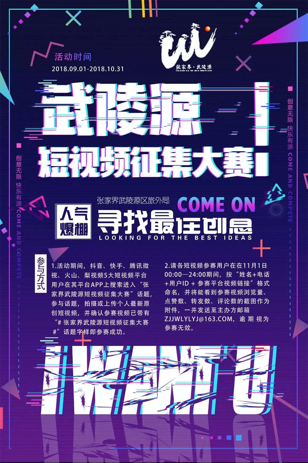 “創(chuàng)意無(wú)界?快樂(lè)有源”2018年張家界武陵源創(chuàng)意短視頻有獎(jiǎng)?wù)骷筚?/span>