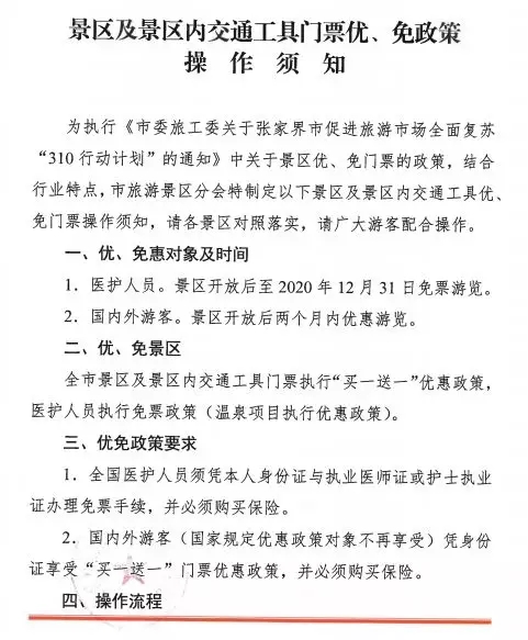 1.景區(qū)開放后至2020年12月31日,所有景區(qū)及景區(qū)內(nèi)交通工具對(duì)全國醫(yī)護(hù)人員實(shí)行免票。