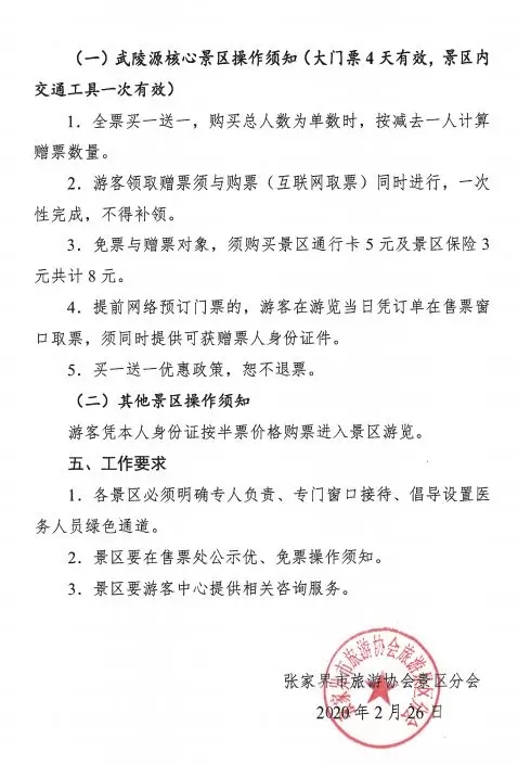 1.景點(diǎn):恢復(fù)開放核心景區(qū)森林公園、金鞭溪、黃石寨、楊家界、袁家界、天子山、索溪峪等景點(diǎn)。