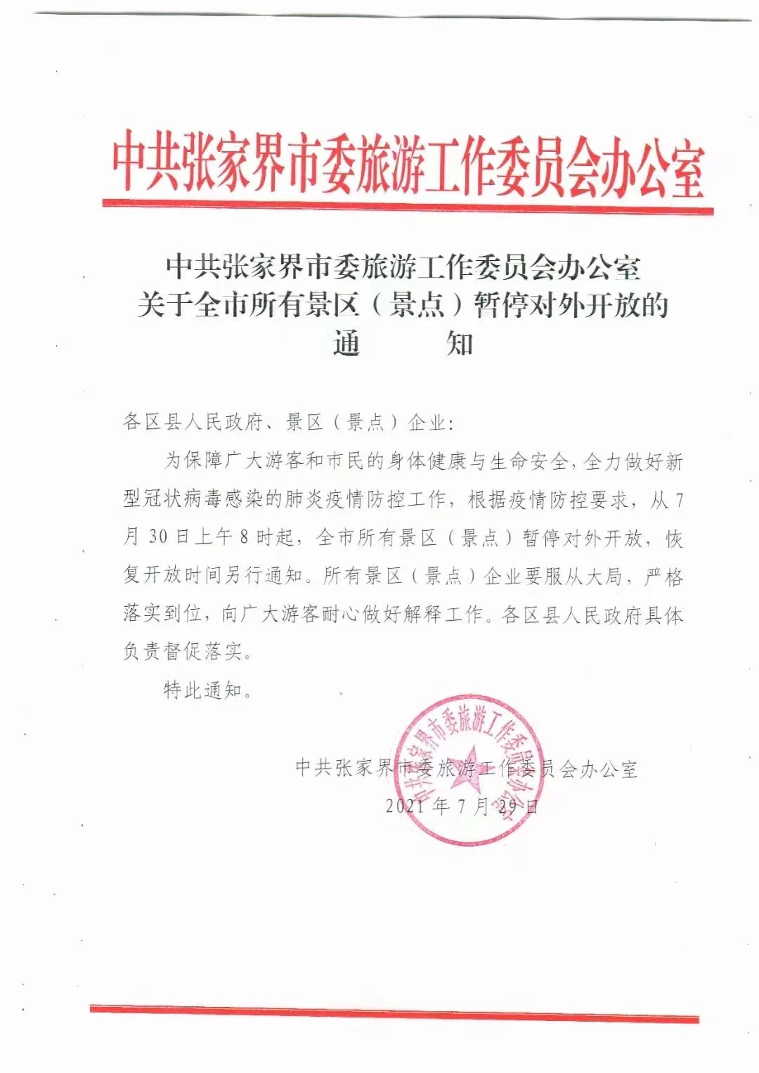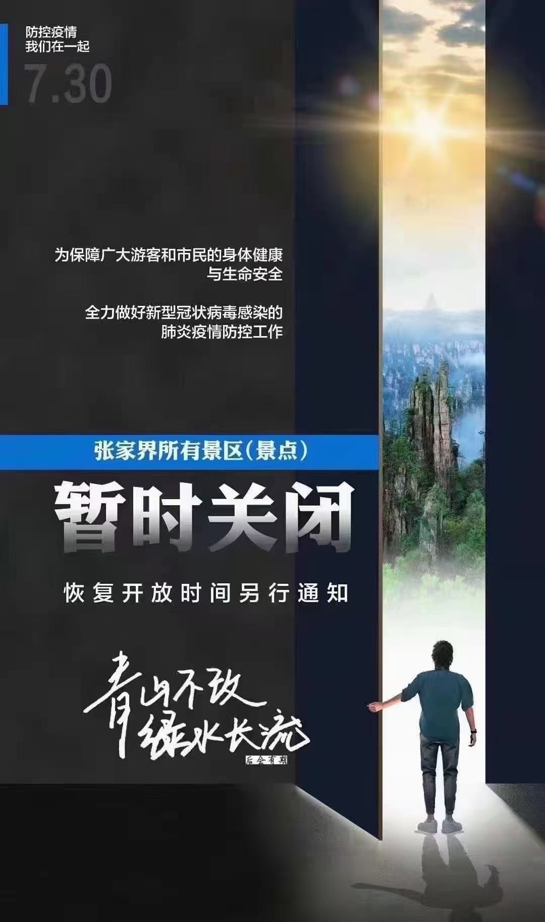7月30日起張家界關(guān)閉所有景區(qū)景點(diǎn),恢復(fù)開放時間待定!