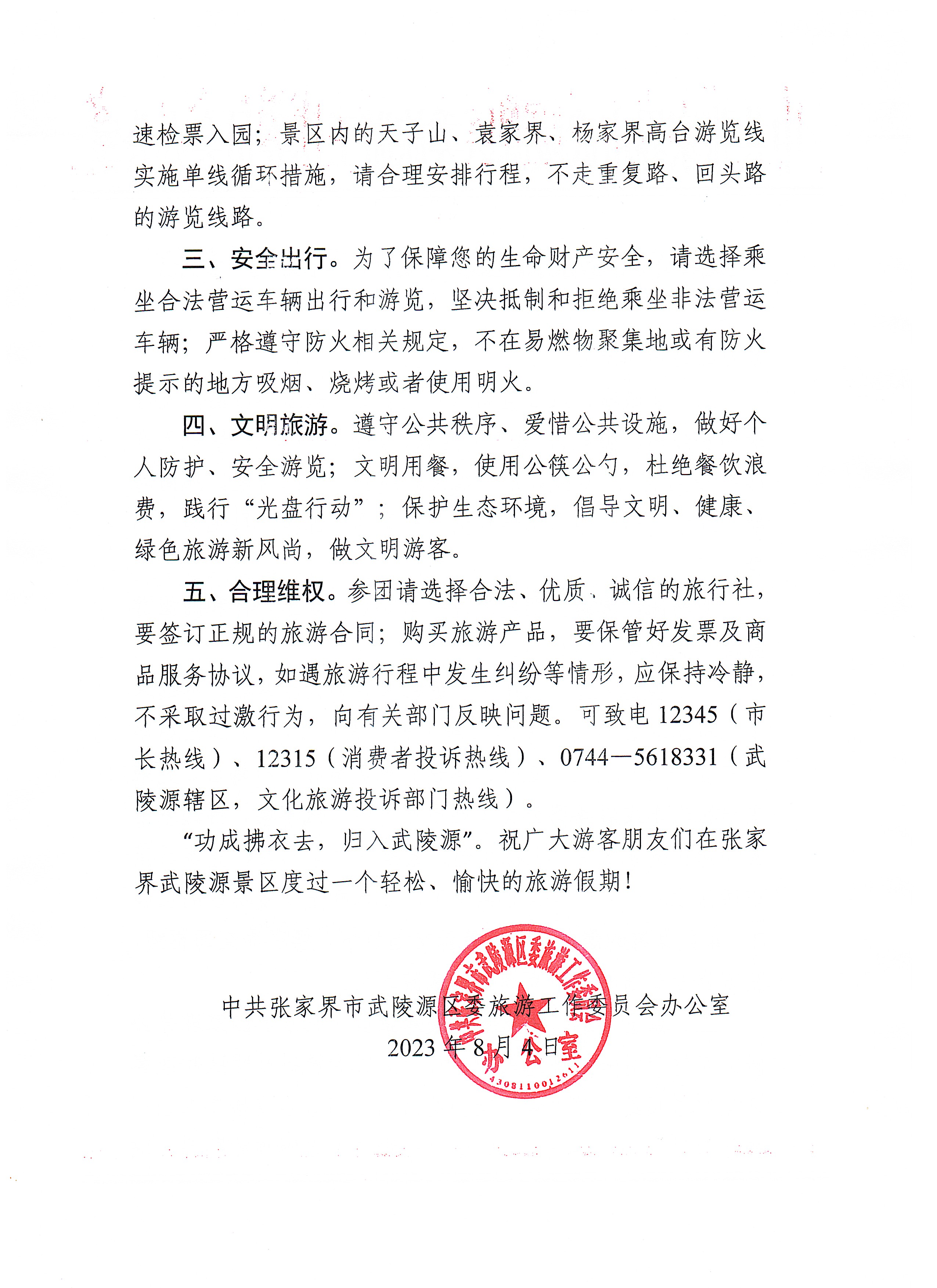 張家界武陵源景區(qū)致廣大游客朋友的一封信!2023-08-04
