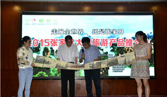 張家界市人民政府副秘書長侯家驥介紹,張家界經(jīng)過30多年的開發(fā)建設(shè),已經(jīng)發(fā)展成為國內(nèi)外知名的旅游勝地。2014年,到張家界旅游觀光的游客達到4000萬人次。今年張家界接待保持較高的增長勢頭,其中張家界核心景區(qū)武陵源上半年接待已超過726萬人次,同比增長23%,旅游總收入超過30.85億元,同比增長22.23%。同時,張家界還是天然的大氧吧,景區(qū)的空氣中每立方厘米負氧離子平均含量高達10萬個。 張家界還創(chuàng)造了許多世界旅游界的奇跡:有世界最高、運行最快、載重最大的張家界核心景區(qū)百龍?zhí)焯荩惺澜缱铋L的高山客運索道天門山索道,有今年10月將開放的世界最長、最高的張家界大峽谷景區(qū)步行玻璃橋, 有走上央視春晚舞臺的《張家界魅力湘西》,還有世界溶洞奇觀黃龍洞,空中圣湖寶峰湖等優(yōu)秀的旅游資源。