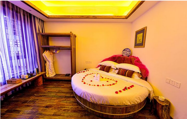 客棧的裝修風(fēng)格具有很濃的中國風(fēng),外觀亭臺小樓,里面天井四合院。有各種風(fēng)格的客房。
