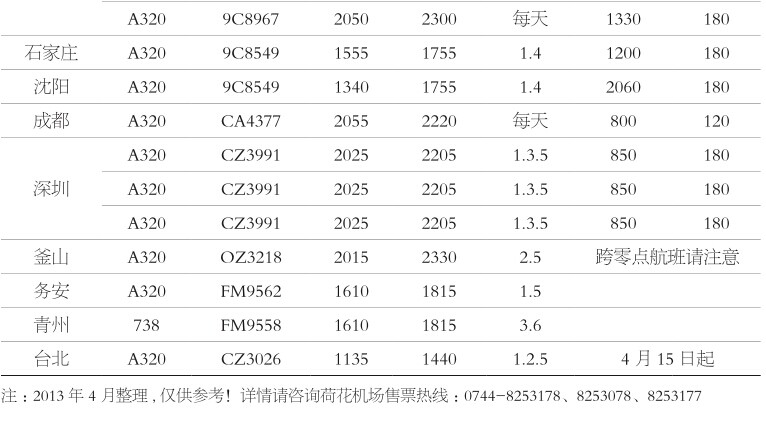 附:張家界荷花機(jī)場航班時刻表(具體實(shí)時航班以網(wǎng)上查詢?yōu)闇?zhǔn)?。?/span>