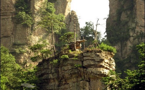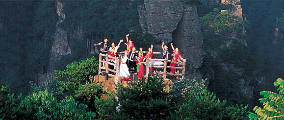 張家界黃石寨頂東頭,伸出一道約100米的山梁, 山梁盡頭有由兩塊砂巖相疊構成的一座觀景臺。