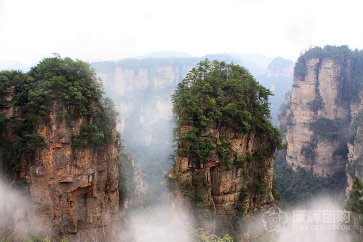 張家界國家森林公園面積 130 平方公里,是中國第一個國家森林公園。其處于峰林演化史的青年期,地貌奇特,石峰林立,形態(tài)各異,樹木茂盛 ;四周山地環(huán)抱,坡陡溝深,氣候暖濕,景點眾多。境內有兩座海拔超過 1000 米的寬厚而頂平坡陡的方山,一曰黃石寨,一曰鷂子寨。從地貌學上來看,方山尚處于峰林演化史中的青年期。由于巖塊既寬廣,巖質又堅硬,周圍山坡又都是由直立節(jié)理面構成的峭壁,遂形成高入云霄、頂端開闊平坦、氣勢雄壯的山寨,給人以寨高臺平的壯美之感。張家界國家森林公園可劃分為黃石寨、琵琶溪、金鞭溪、鷂子寨、畬刀溝、袁家界等六個小景區(qū)。