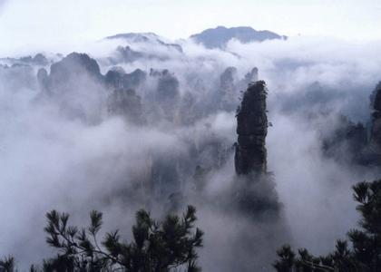 黑樅垴,位于張家界國家森林公園內,黃石寨頂部臺地北端,其上因有一大片黑壓壓的樅樹林而得名。這一景觀可望不可及,壁立于幽深峽谷之中,臺地四面陡峭如削,其上長滿高大蔥郁的松林和眾多雜木,形成黑黝黝一大片原始森林。