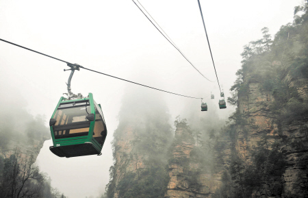 黃石寨索道線路斜長973米,高差430米,是由張家界國家森林公園管理處與臺灣瑞展公司合資興建的一條單承載單牽引車組往復式索道,主要機電設備從法國POMA公司引進。自1997年運營以來,累計接待游客近千萬人次,多次圓滿完成接待黨和國家領導人的任務。公司先后通過ISO9001、ISO14001、GB/T28001管理認證。2005年3月在中國索道協(xié)會“以人為本,安全第一,打造中國索道知名品牌”的全國十佳索道評選活動中,經評選委員會和索道專家組評定,黃石寨索道綜合得分位列全國“十佳”之首。