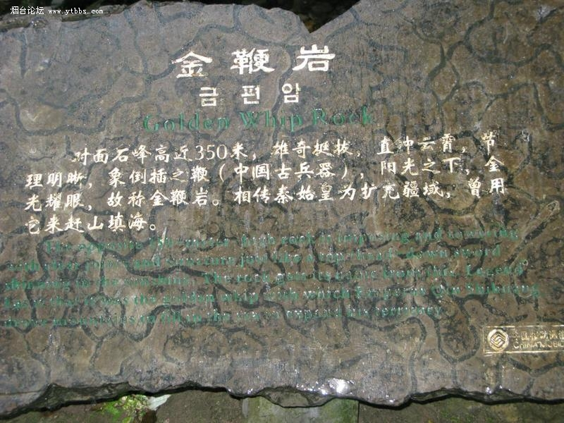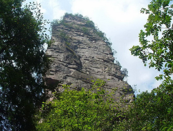 是張家界數(shù)以千計(jì)的奇峰怪石中又一典型,它從山間拔地而起,三面筆陡,有棱有角,金光閃爍,氣勢雄偉,因形同古代兵器中的鞭而得名。相傳,秦始皇趕山填海到此,因醉酒 不慎將金鞭墜落,化作石峰。