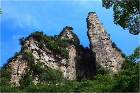 位于張家界國家森林公園內(nèi),這是一個(gè)象形石峰,似男女人形作依偎狀,故此得名。位于紫草潭東約600米處,峰叢中兩座較高石峰下端渾然一體。
